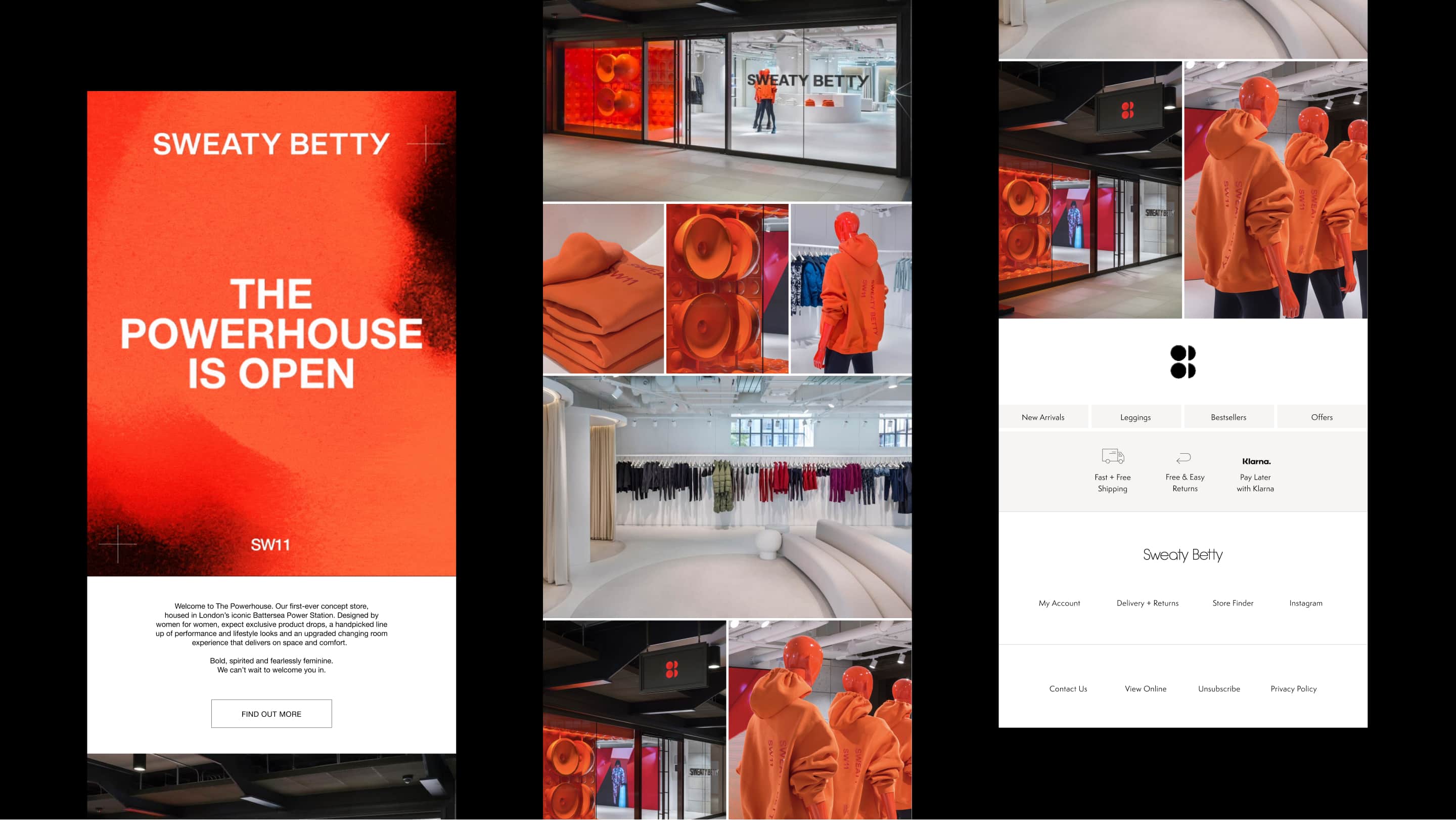 Brand identity and look and feel for the Sweaty Betty first concept store ‘The Powerhouse' at London’s Battersea Power Station. The store captures a feeling of strength and energy, so the visual identity needed to reflect this and we did this by utilising the new colour developed in collaboration with Pantone alongside high energy imagery and an animated typographic treatment.